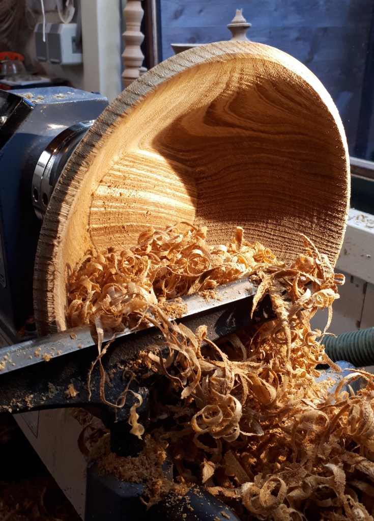 Nadat ik eerder een cursus ‘houten lepels maken’ had gevolgd, heb ik in 2017 het houtdraaien op de draaibank ontdekt. Na een cursus, wist ik het: dit is wat voor mij, hier kan ik mijn creativiteit en energie in kwijt! Ik heb een draaibank gekocht en een tuinhuis in de tuin gezet. Dit is nu mijn atelier van waaruit ik werk. Ik maak veel draaiuren en volg regelmatig cursussen om mij steeds meer te bekwamen in deze mooie ambacht.